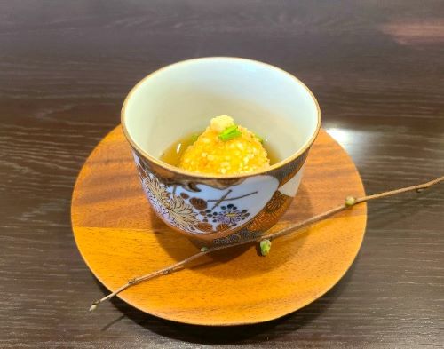 *先付:鴨饅頭 芹入り餡 生姜添え
